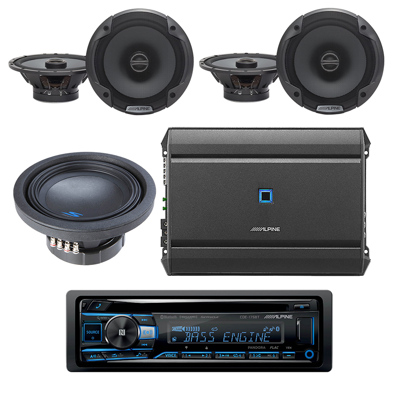 Alpine S-A55V + Alpine CDE-175BT + Two Alpine SPE-6000 + Alpine S-W8D4 Exclusive Bundle