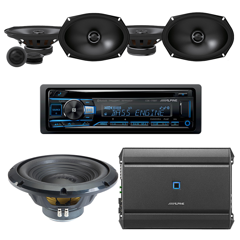Alpine S-A55V + Alpine CDE-175BT + Alpine S-S69C + Alpine S-S69 + Alpine W12S4 Exclusive Bundle