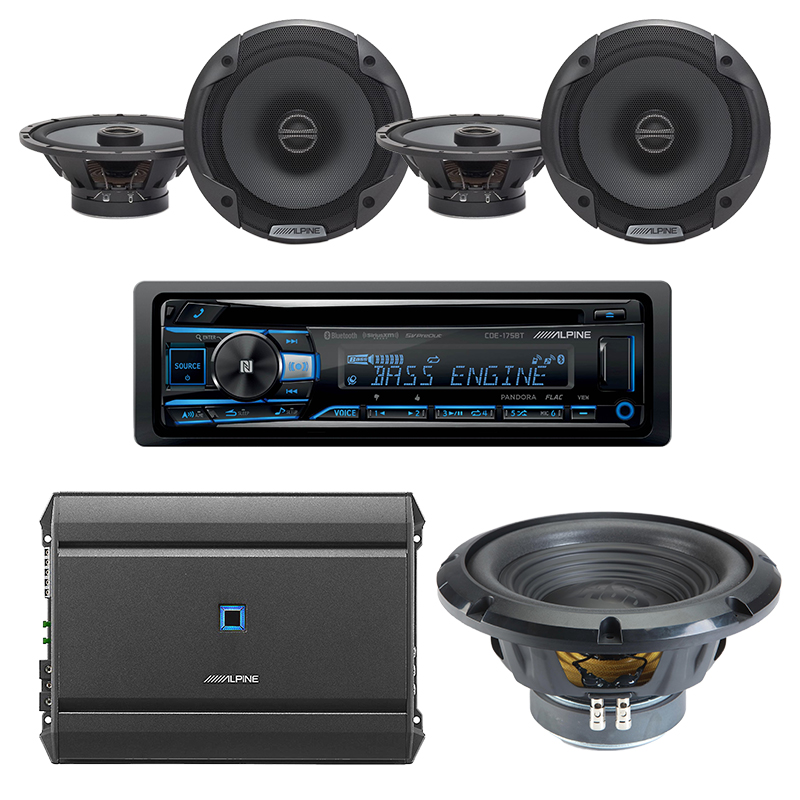 Alpine S-A55V + Alpine CDE-175BT + Two Alpine SPE-6000 + Alpine W10S4 Exclusive Bundle