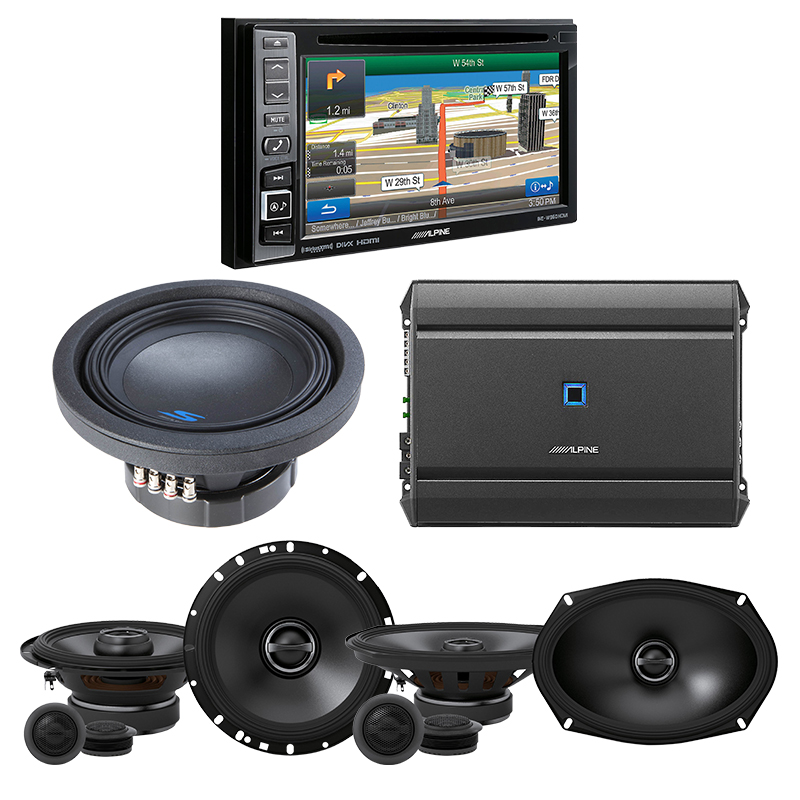 Alpine INE-W960HDMI + Alpine S-A55V + Alpine S-S69C + Alpine S-S65C + Alpine S-W8D4 Exclusive Bundle
