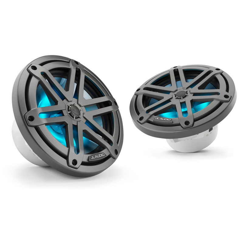 M3 Series 7.7" 225W Peak Power Handling 4 Ohms, 2-Way Marine Coaxial Speakers, Gunmetal with LED Lights and Sport Grilles (Pair)