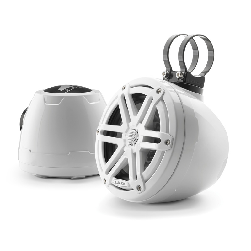 M3 Series 6.5" 225W Peak Power Handling 4 Ohm, 2-Way Marine Wakeboard Tower Speakers, Gloss White with Gloss White Sport Grille (pair)