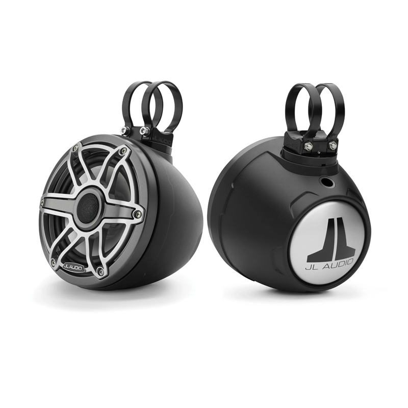M6 Series 6.5" 225W Peak Power Handling 4 Ohms, 2-Way VEX Wakeboard Marine Tower Speakers Matte Black with Gunmetal Sport Grille and Titanium Grille (Pair)