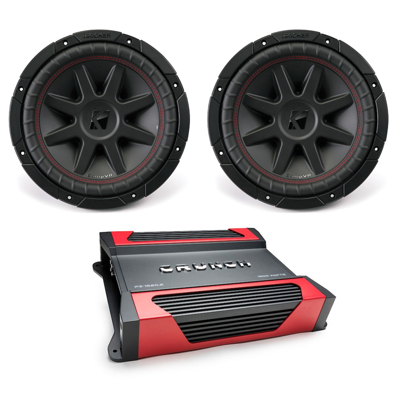 (2 Pack) Kicker 43CVR104 10" 700W Peak Power Subwoofer + Crunch PZ-1520.2 1500W Max Power, Class A/B 2-channel Car Amplifier
