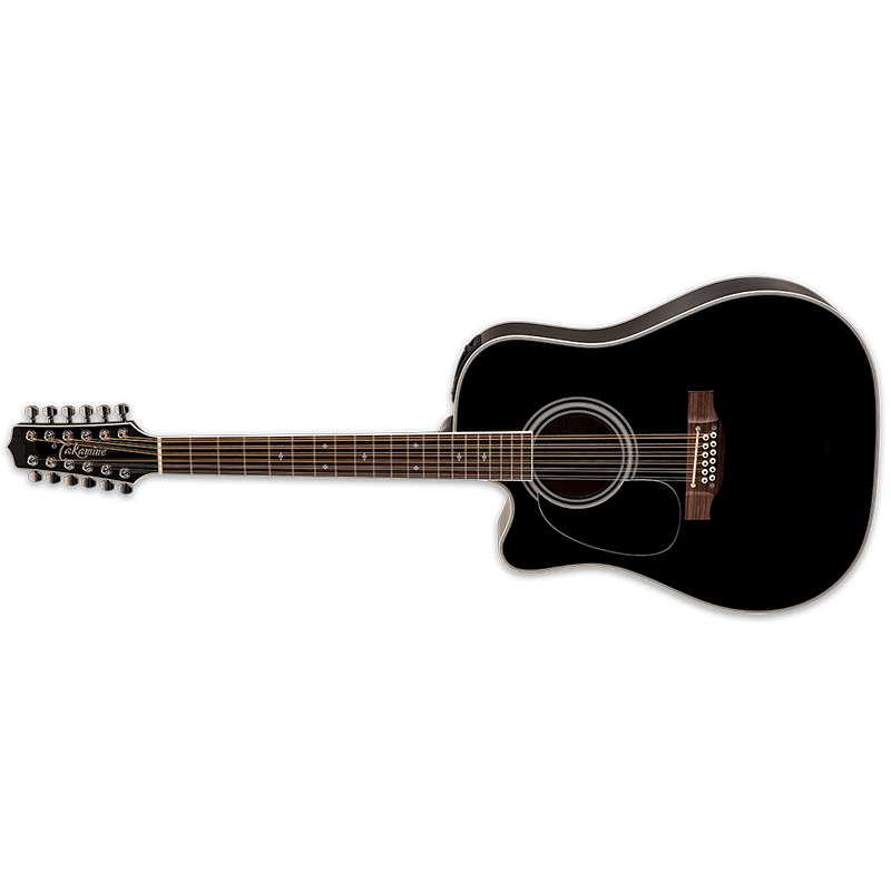 Takamine Guitars Legacy Series 12-string Dreadnought With Cutaway, Solid Spruce Top, Maple Back And Sides, Gloss Black Finish, CT4BII Electronics W/case - Left Handed
