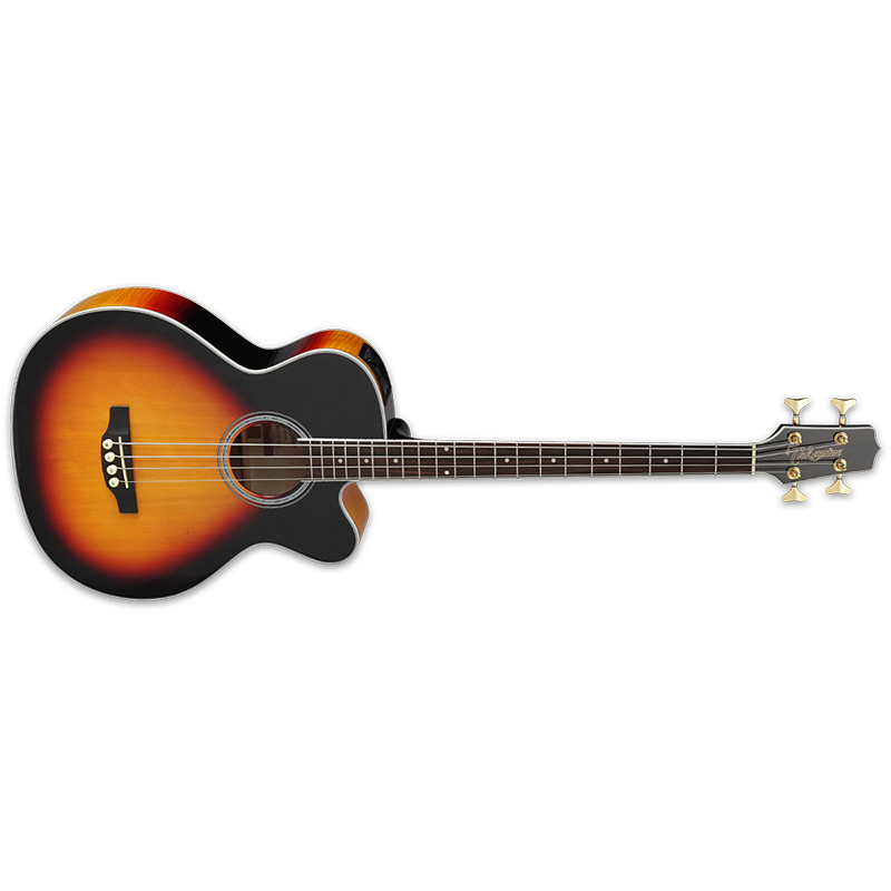 Takamine G Series Bass Acoustic-electric Bass With Cutaway, Solid Spruce Top, Flame Maple Back And Sides, Gold Hardware, Brown Sunburst Finish, And TK-40B Electronics