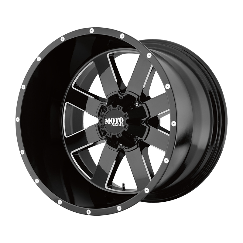 MO962 20"x10", -24 Offset, 5x127.00/5x139.70 Bolt Pattern, 78.30mm Hub, Gloss Black Milled Rims