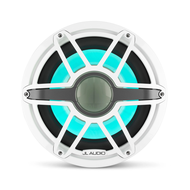 M7 Series 12" 1000W Peak Power Handling 4 Ohms, Marine Subwoofer, Built-In RGB LED Lighting with Gloss White Trim Ring and Gloss White Sport Grille