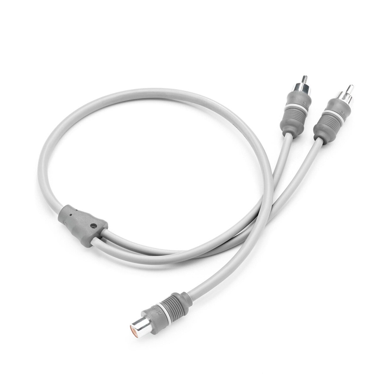 Twisted-Pair Marine Audio Y-Adaptor with Molded Connectors - (1 Female Jack & 2 Male Plugs)