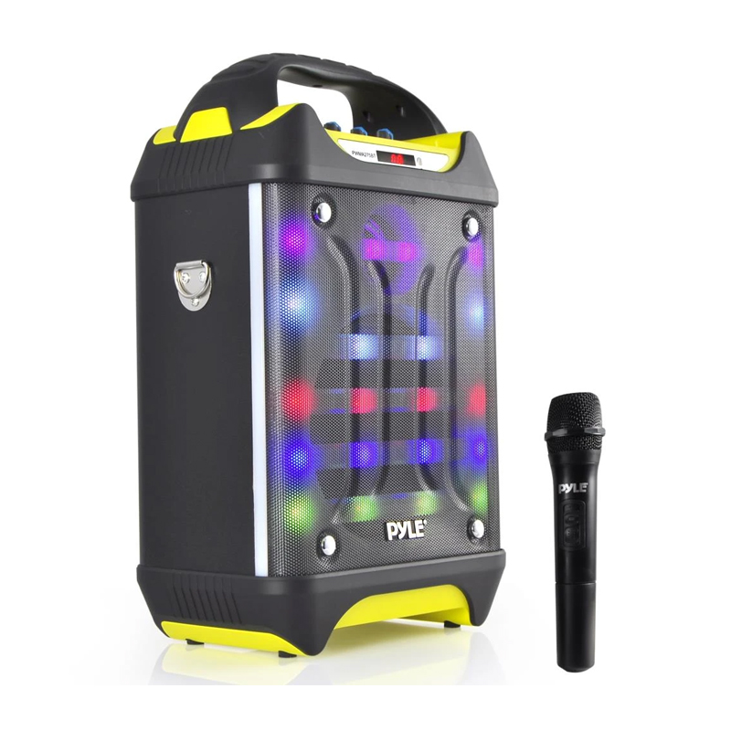 Portable Bluetooth Karaoke Speaker System, Flashing DJ Lights, Built-in Rechargeable Battery, Wireless Microphone, Recording Ability, MP3/USB/SD/FM Radio