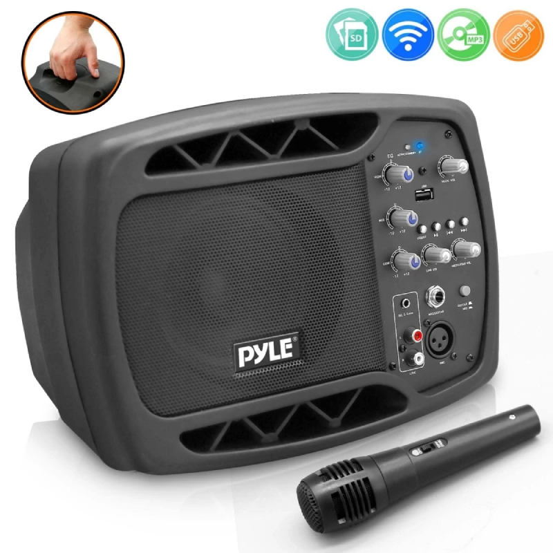 Pro Audio Bluetooth 200W Max Power PA Speaker with Built-In Class D Amplifier, Wired Microphone and 5" Subwoofer