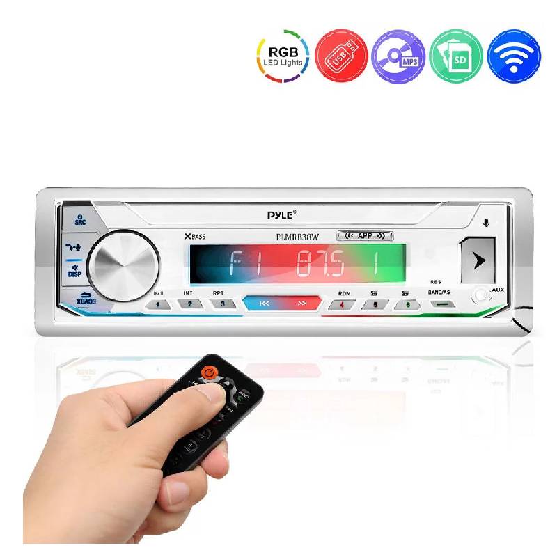 Marine Stereo Receiver Power Amplifier - AM/FM/MP3/USB/AUX/SD Card Reader Marine Stereo Receiver, Single DIN, 30 Preset Memory Stations, LCD Display with Remote Control