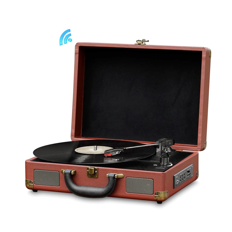 Bluetooth Classic Vintage Style Turntable Speaker System, Vinyl-to-MP3 Recording, MP3/USB/SD Readers, Briefcase-Style (Brown)