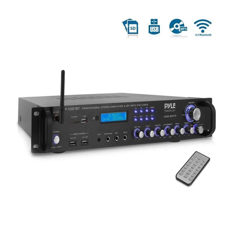 3000W Bluetooth Amplifier Receiver with Wireless Streaming, Optical/Coax, MP3/USB/SD/AUX/FM/AM Radio