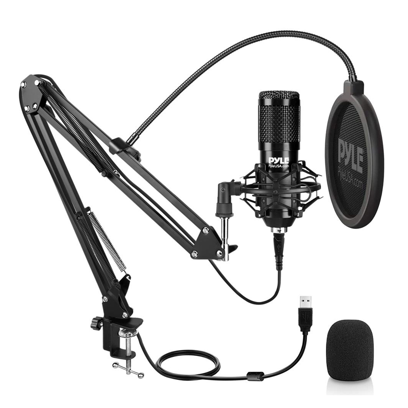 Professional USB Podcast Microphone Kit - High-Res. Mic with USB Cable, Pop Filter, Mic Stand, Shock Mount