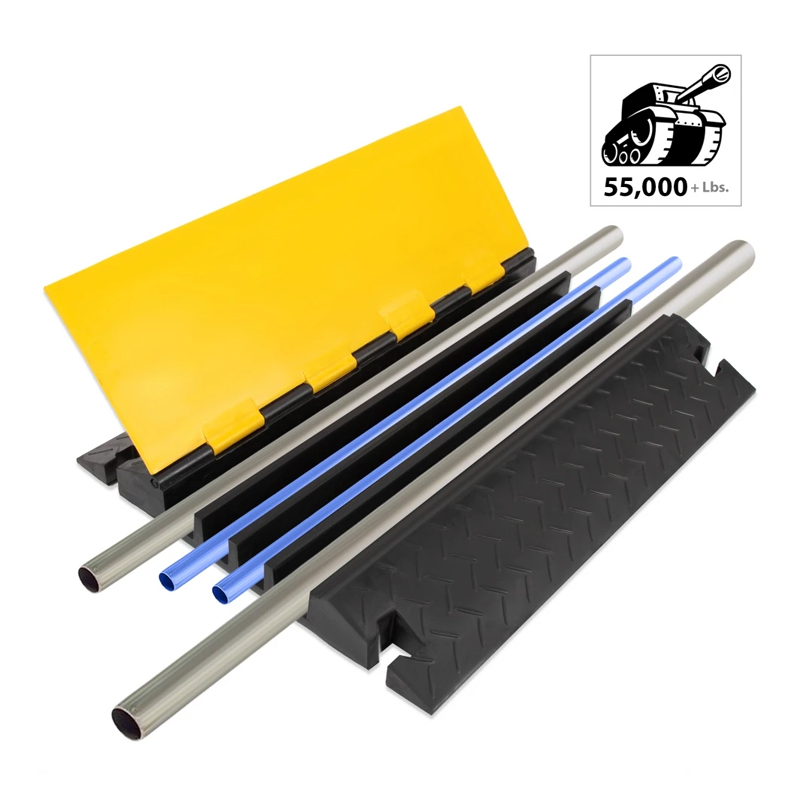 Cable Protector Cover Ramp - Cord/Wire Safety Concealment Track with Flip-Open Access Lid, Ultra Rugged Heavy-Duty (4-Channel Style)