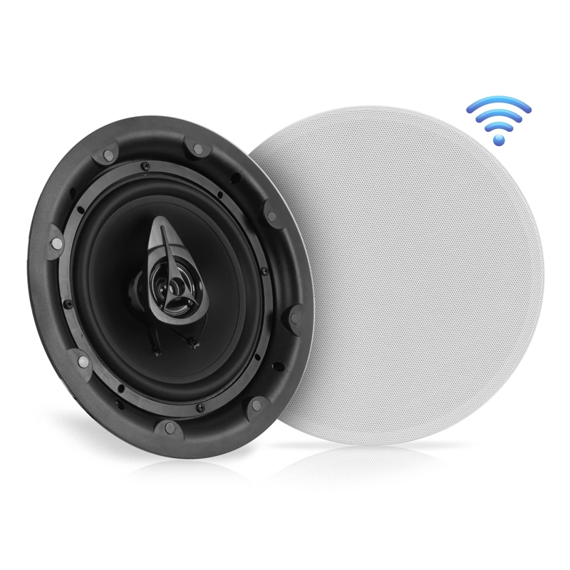 8" 360W Max Power Dual In-Wall / In-Ceiling Bluetooth Speaker System - 2-Way Full Range Stereo Speakers with Wireless Streaming Ability, Magnetic Grill