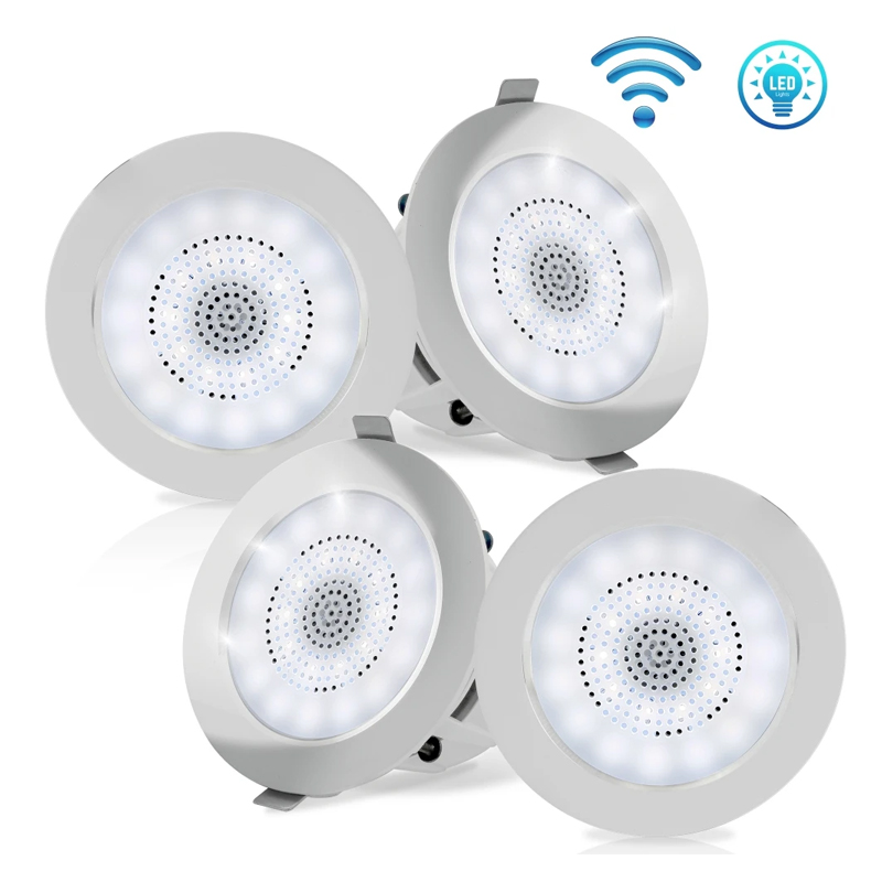 3.5" 280W Max Power Bluetooth Ceiling / Wall Speaker Kit, (4) Aluminum Frame 2-Way Speakers with Built-in LED Lights