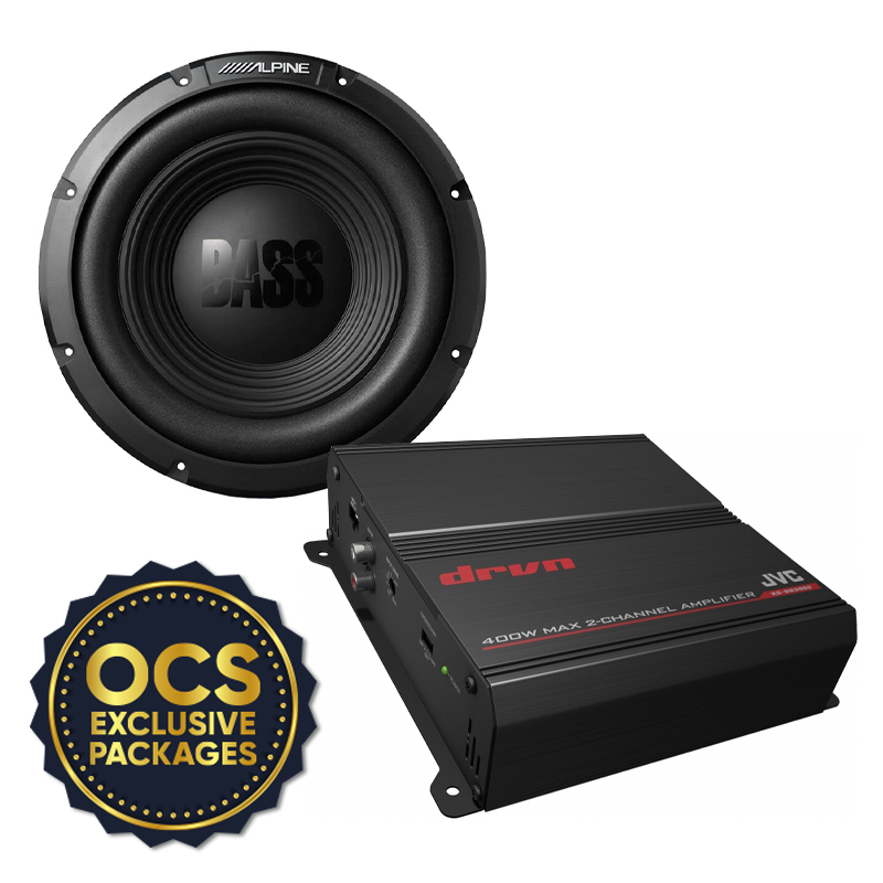 JVC KS-DR3002 400W Peak Power 2-channel Power Amplifier + Alpine W12S4 12" 750W Max Power Single 4 Ohms Car Subwoofer