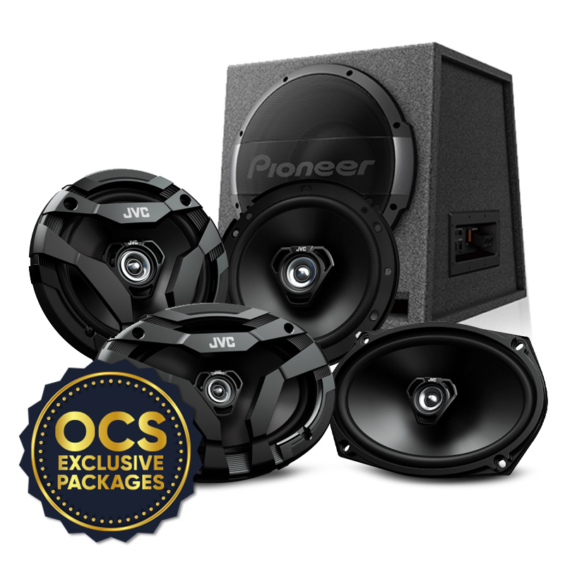 Pioneer TS-WX1210AH 12" 1500W Peak Single Powered Subwoofer + JVC CS-DF620 6.5" 300W Peak Power 2-Way Coaxial Speakers + JVC CS-DF6920 6x9" 400W Peak Power 4 Ohms 2-way Coaxial Speakers