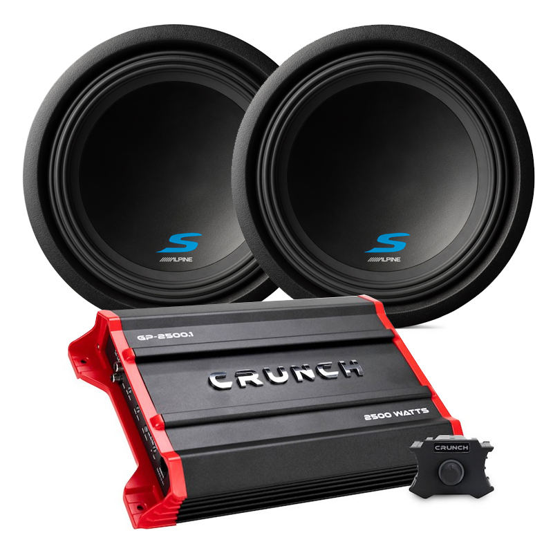(2 Pack) Alpine S-W12D4 12" 1800W Peak Power Dual 4 Ohms Voice Coil Subwoofer + Crunch GP-2500.1 2500W Monoblock Subwoofer Amplifier