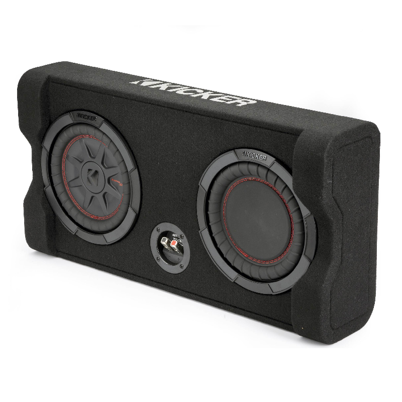 CompRT Series Shallow-Mount 8" 600W Peak Power Handling 2 Ohms, Car Subwoofer and Passive Radiator in Sealed Down Firing Enclosure