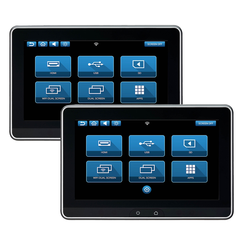Dual 10.1” Seat-back Entertainment System with Dual Android, DVD, HDMI, SD, USB, And Touch Screen Interface