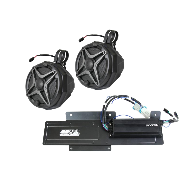 Polaris RZR XP Turbo S complete 2 speaker SSV Cage Mount Plug-and-Play system With Factory Ride Command