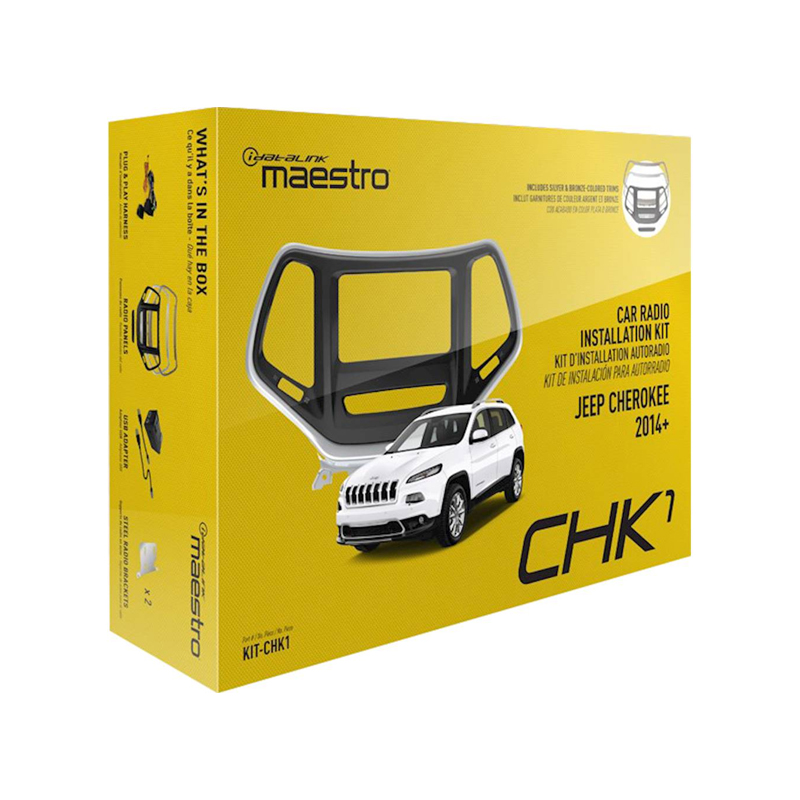 Dash Kit and T-harness solution for 2014 and Up Jeep Cherokee in all Trims. Includes T-harness, Radio Panel, Steel Radio Brackets and USB Adapters