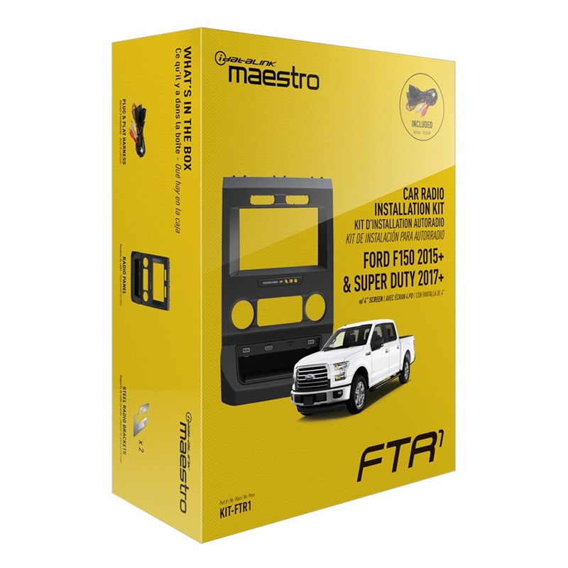 Dash Kit and T-harness solution for 2015 and Up Ford F150 and Superduty. Includes T-harness, Radio Panel, Steel Radio Brackets and USB Adapter