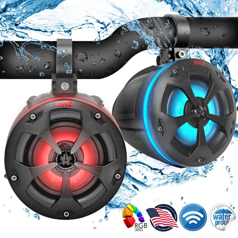 4" 800W Peak Power Handling Waterproof Rated Off-Road Bluetooth Speakers - Amplified Vehicle Speaker System for ATV, UTV, 4x4, Jeep with RGB Lights & Remote Control