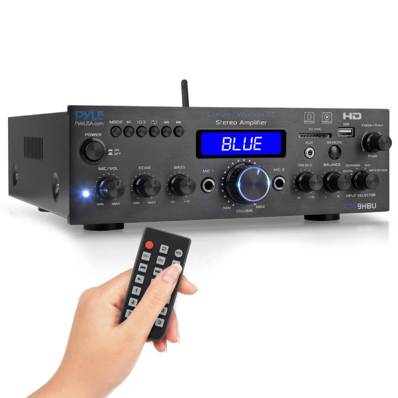 Compact Wireless Bluetooth Stereo Amplifier - Optical/Phono/Coaxial/FM Radio/Microphones/USB & SD Memory Card Readers, HDMI Inputs/Outputs with Digital LCD Display (200 Watt)
