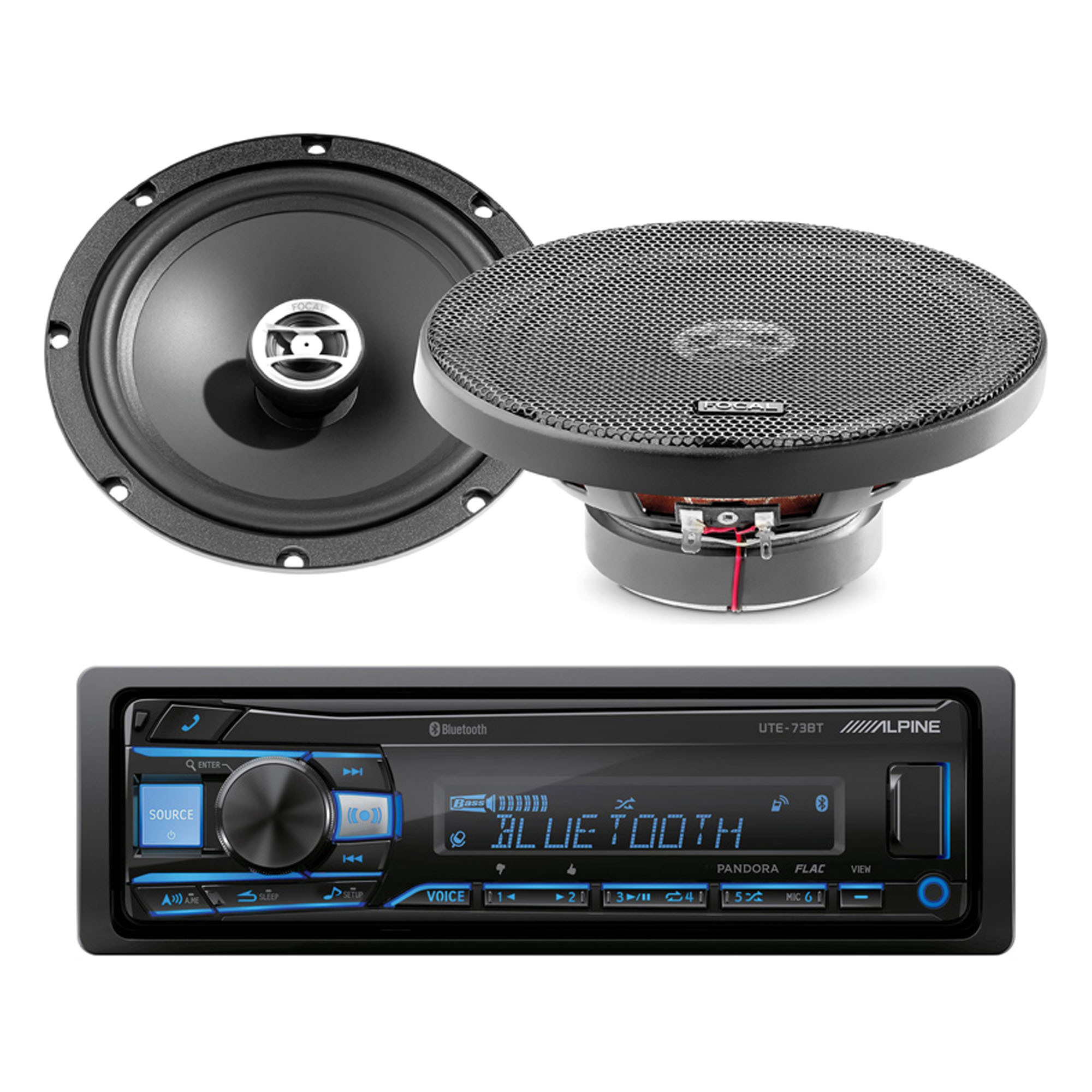Alpine UTE-73BT 1-DIN Digital Media Receiver + Focal RCX-165 6.5" 60W RMS Speakers