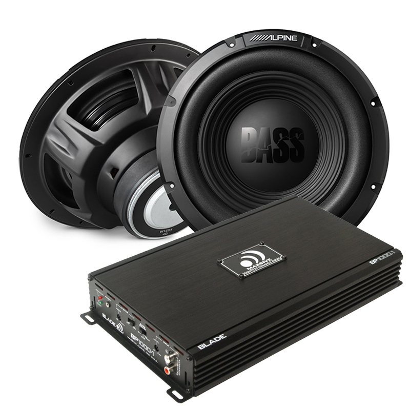 Alpine W12S4 BassLine 12" Subwoofer + Massive Audio BP1000.1-V2 BLADE BP455 Mono Amp