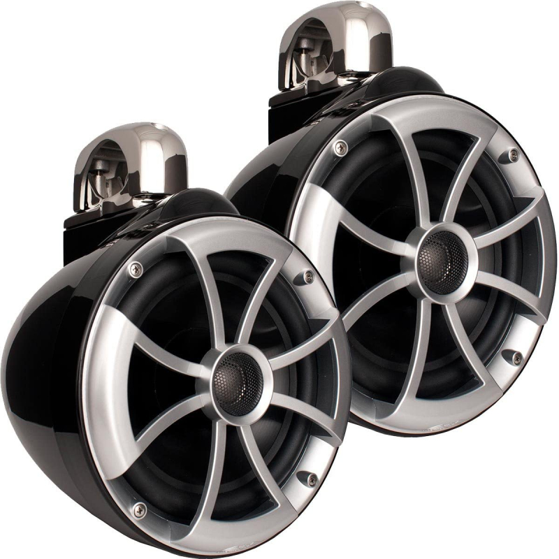 ICON Series 8" 300W Peak Power Handling 4 Ohm, Black Wakeboard Tower Speaker With Fixed Clamps - Stainless Steel