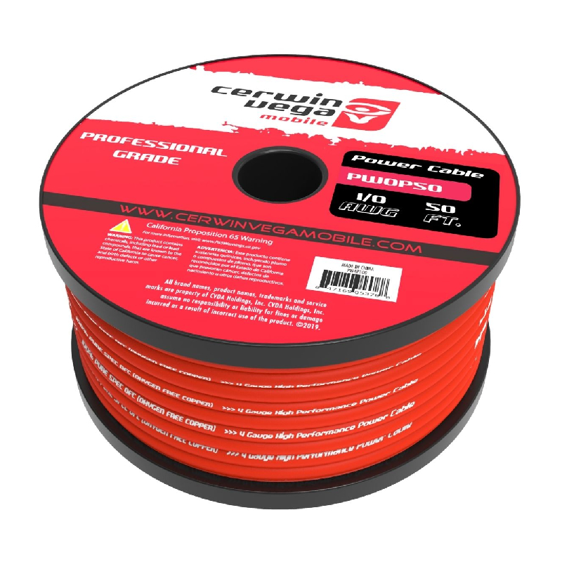 Power Wire 1/0 Gauge, OFC, Frost Red 50ft. Spool