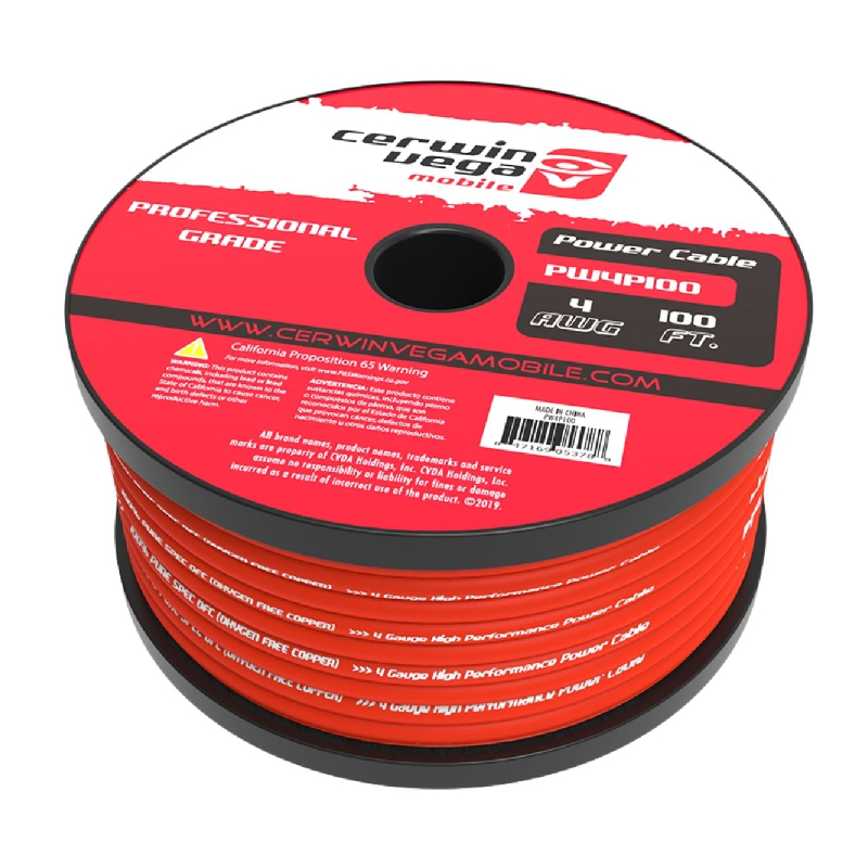 Power Wire 4 Gauge, OFC, Frost Red 100ft. Spool