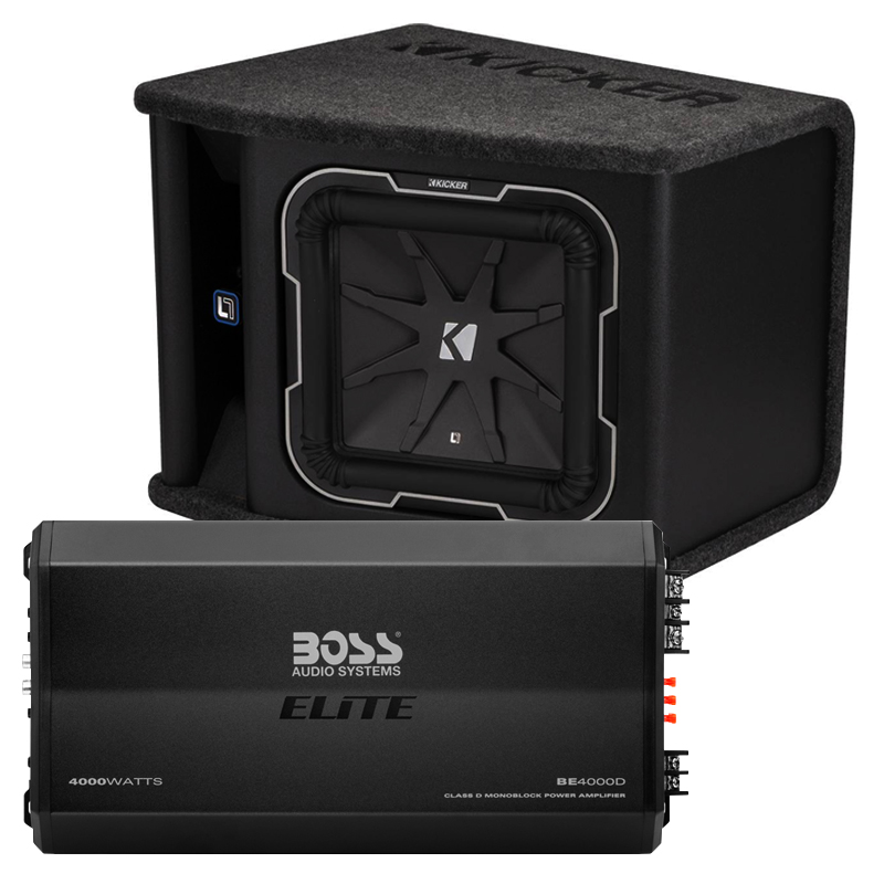 Kicker Q-Class 41VL7122 12" 900W RMS Vented Enclosure + Boss Elite BE4000D 1500W x 1 @2Ohms Amplifier