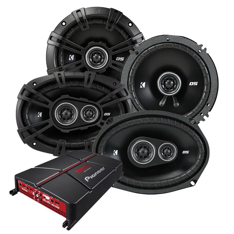 Pioneer GM-A4704 65W RMS x 4 @2Ohms Car Amplifier + Kicker 43DSC6504 6.5" 60W RMS Full Range Car Speakers + Kicker 43DSC69304 6x9" 90W RMS Car Speakers
