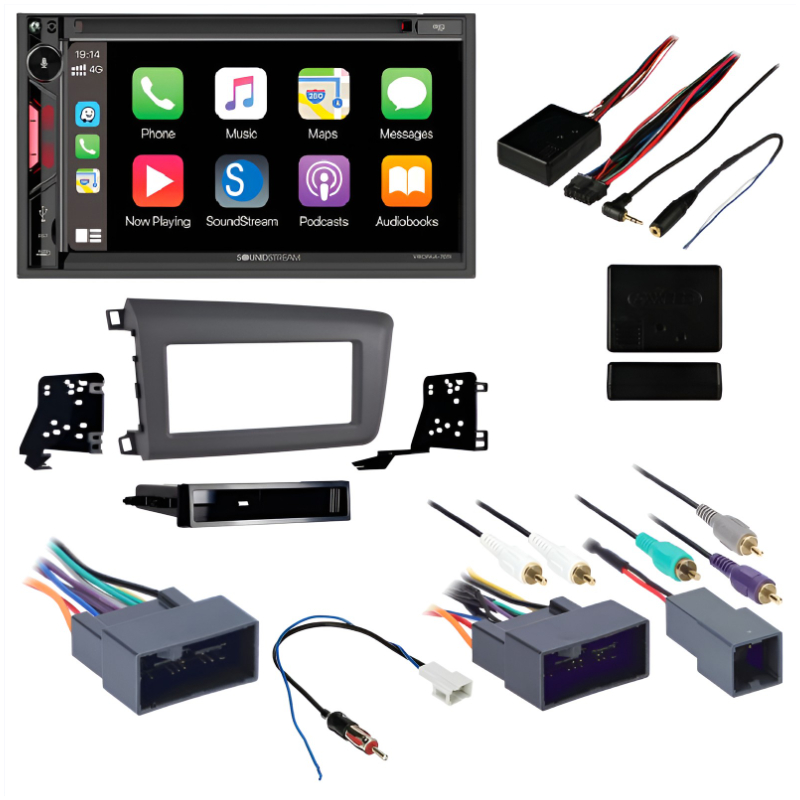 Soundstream VRCPAA-7DR 7" DVD/CD Multimedia Receiver w/ Apple CarPlay, Android Auto + Metra 95-7881G Installation Kit + Metra 70-1729 Wiring Harness + Metra 70-1730 Amp Integration Harness + Axxess AXSWC SWC Interface + Metra 40-HD11 Antenna Adapter Cable