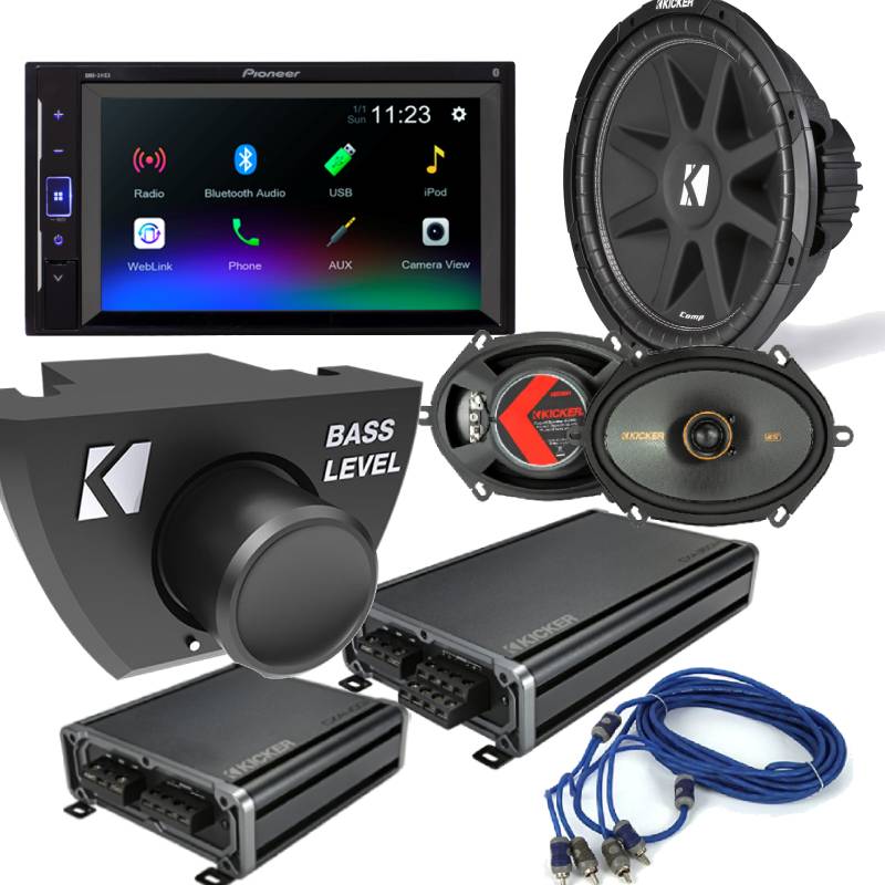 Pioneer DMH-241EX 6.2" Digital Media Receiver + (2) Kicker 47KSC6804 6x8" Speakers + Kicker 43C154 15" Subwoofer + Kicker 46CXA4001T Monoblock Subwoofer Amp + Kicker 46CXA3604T 4-Channel Amp + Kicker 46CXARCT Bass Remote Control + Kicker 46KI26 RCA Cable