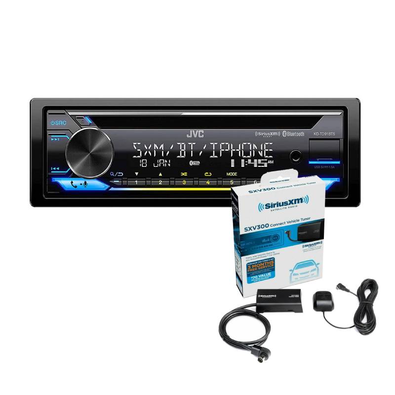 JVC KD-TD91BTS 1-DIN CD Receiver featuring Bluetooth + Sirius-XM SXV300V1 Satellite Radio Tuner Exclusive Car Stereo Package