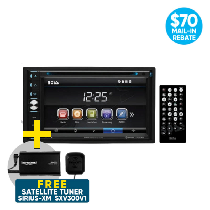 Boss Elite BV765B 2-DIN 6.5" Touchscreen Monitor, Bluetooth® + FREE Sirius-XM SXV300V1 Satellite Radio Tuner (Free After $70 Mail-in Rebate) Exclusive Car Stereo Package"
