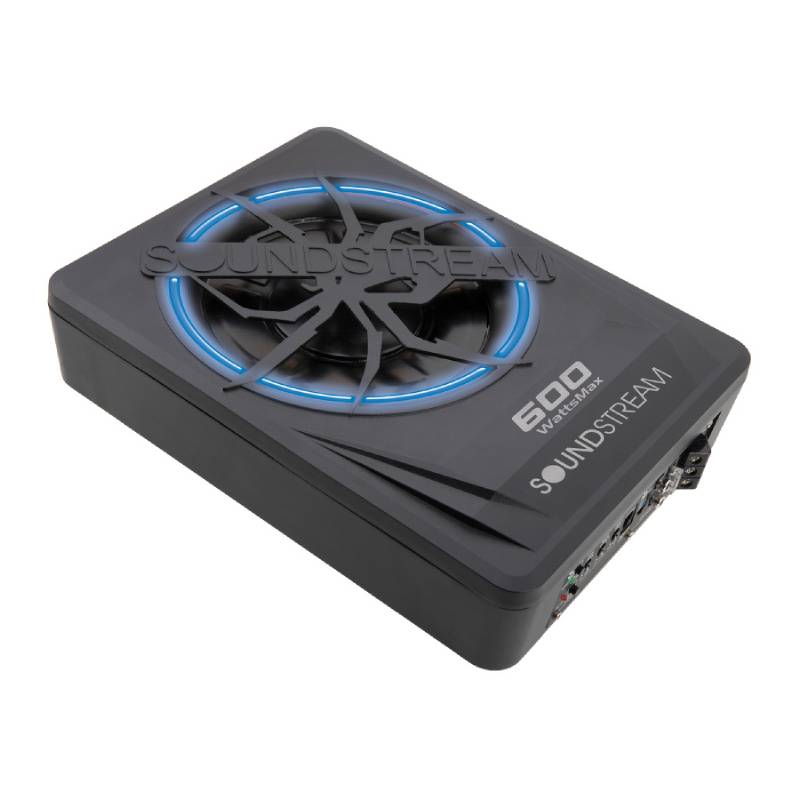 600W Max Power Monoblock Class D Under Seat Enclosure with 8" Subwoofer & RGB LED Lighting