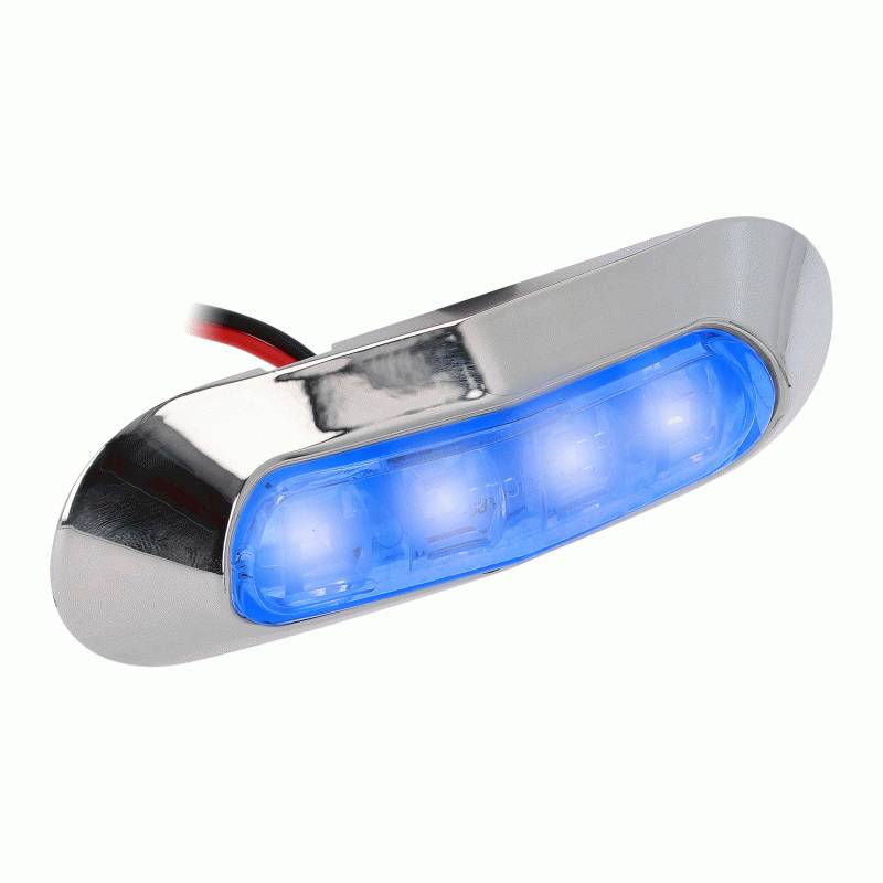 Universal Chrome Plastic Bezel Blue 4-LED marine accent light