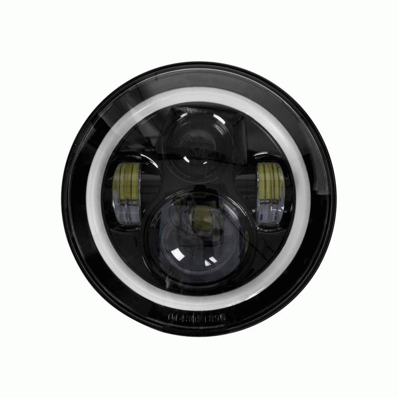 Universal Motorcycle Headlight 7" with Black Face and Full Halo