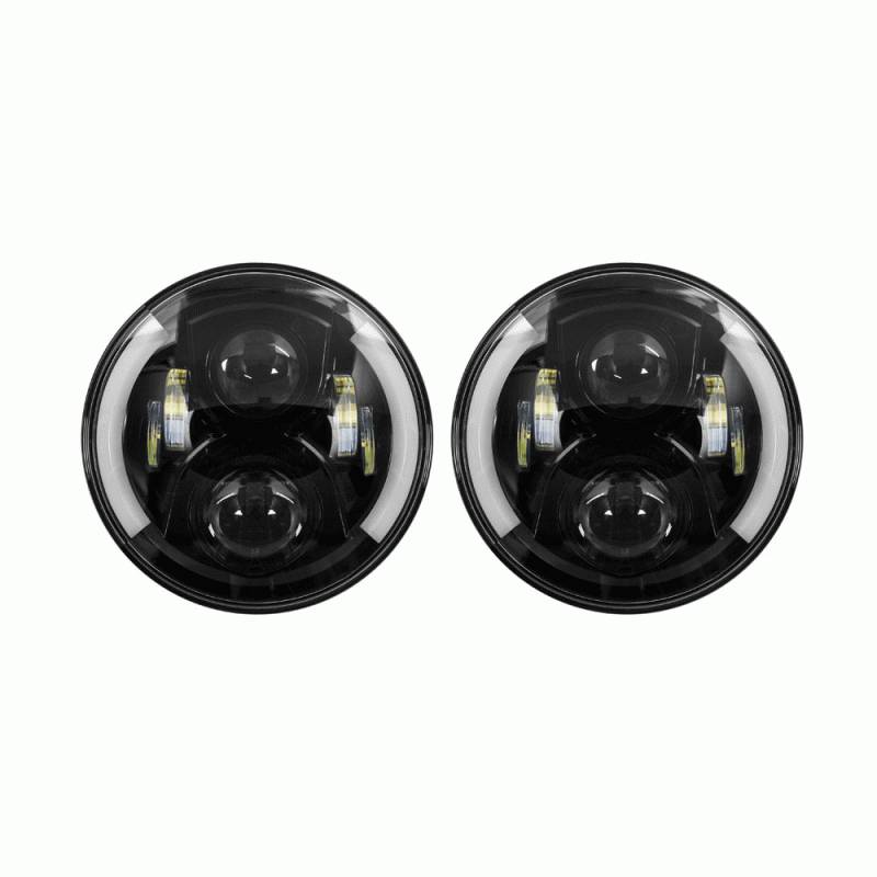 7" Universal LED Round Headlight with Black Face and Partial Halo
