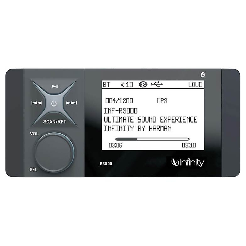 Wake Series 1-DIN 4" 2 Ohms Stable Digital Media Marine Receiver with Bluetooth Technology, AM, FM Tuner, and USB Input