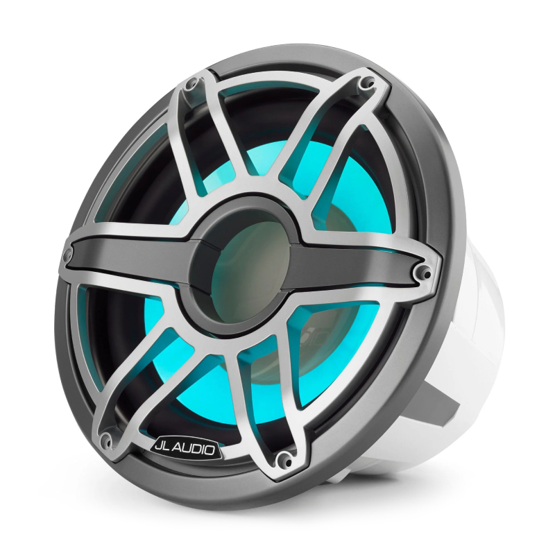 M7 Series 12" 600W RMS 4 Ohms, Marine Subwoofer, Built-In RGB LED Lighting with Gunmetal Trim Ring and Titanium Sport Grille