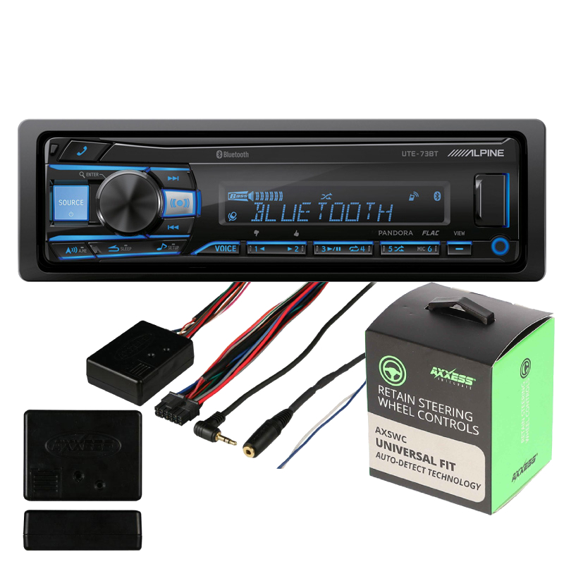 Alpine UTE-73BT 1-DIN Mech-Less Digital Media Receiver + Axxess AXSWC Universal Steering Wheel Control Interface
